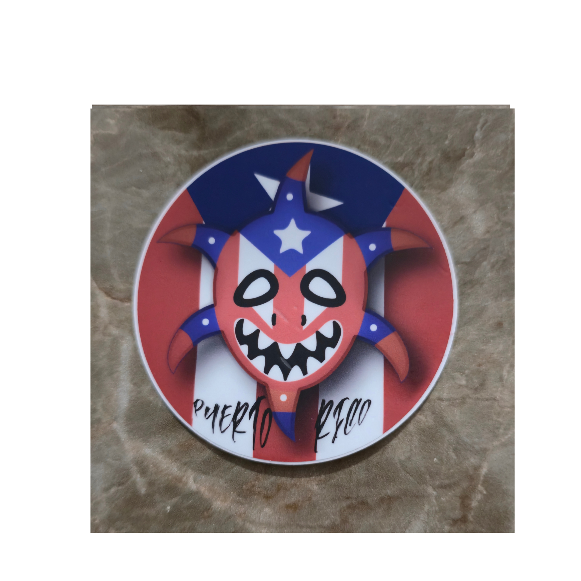Celebra la cultura puertorriqueña con esta vibrante calcomanía de Vejigante. Su diseño brillante y colorido captura el espíritu alegre de los festivales tradicionales, convirtiéndola en un símbolo de orgullo para exhibir en tu laptop, botella de agua o libreta. Muestra tu orgullo cultural y comparte alegría dondequiera que la pegues. Tamaño: 3 pulgadas x 3 pulgadas.